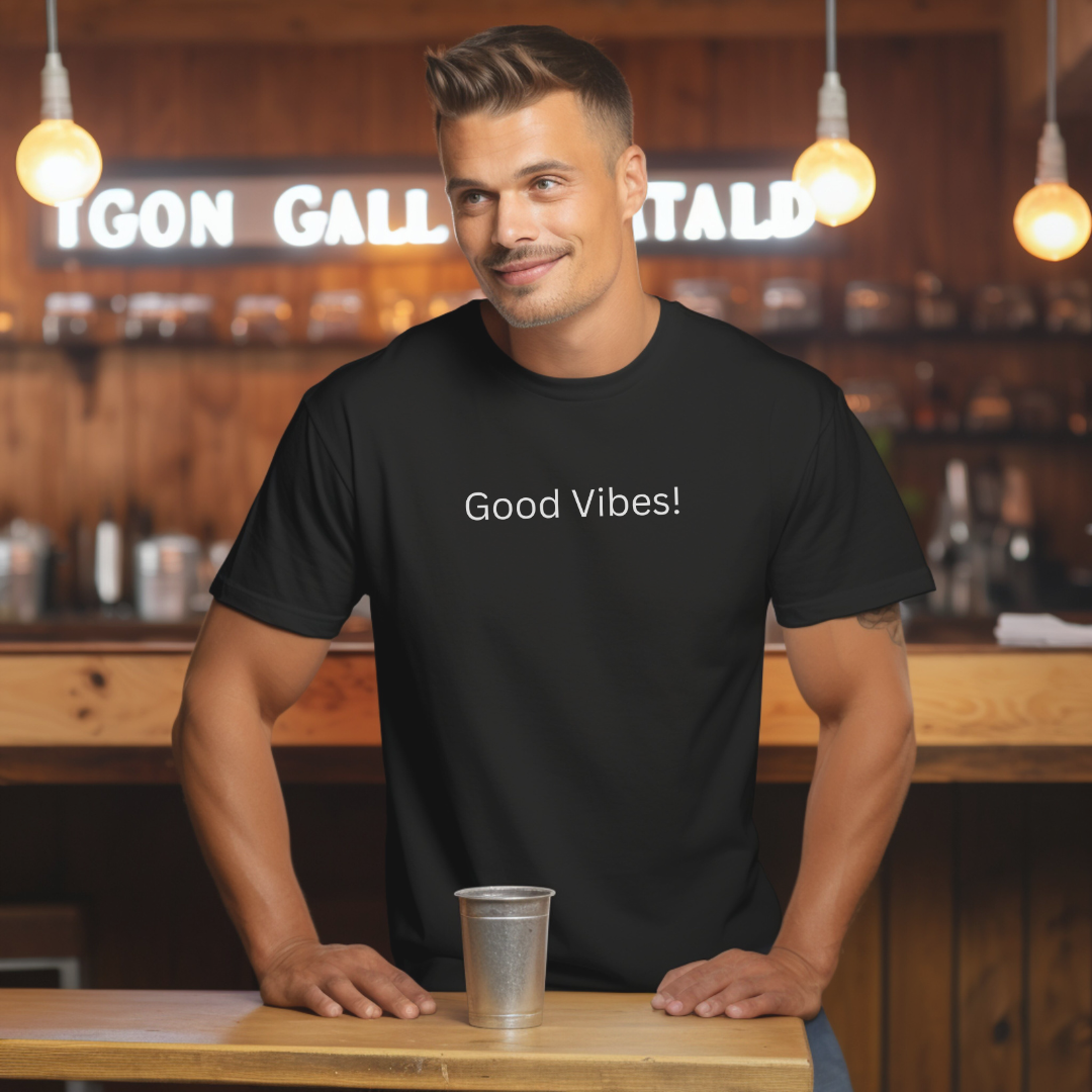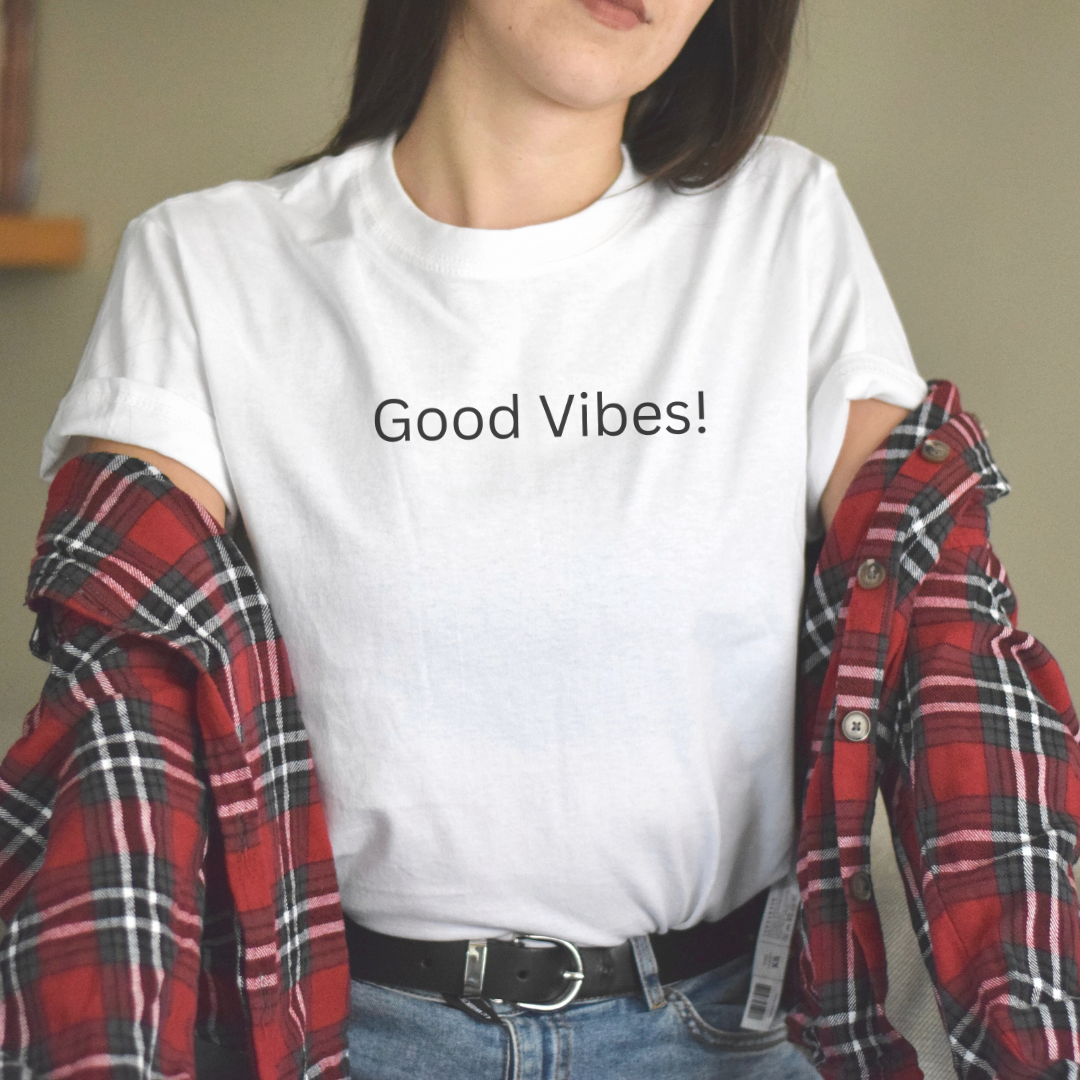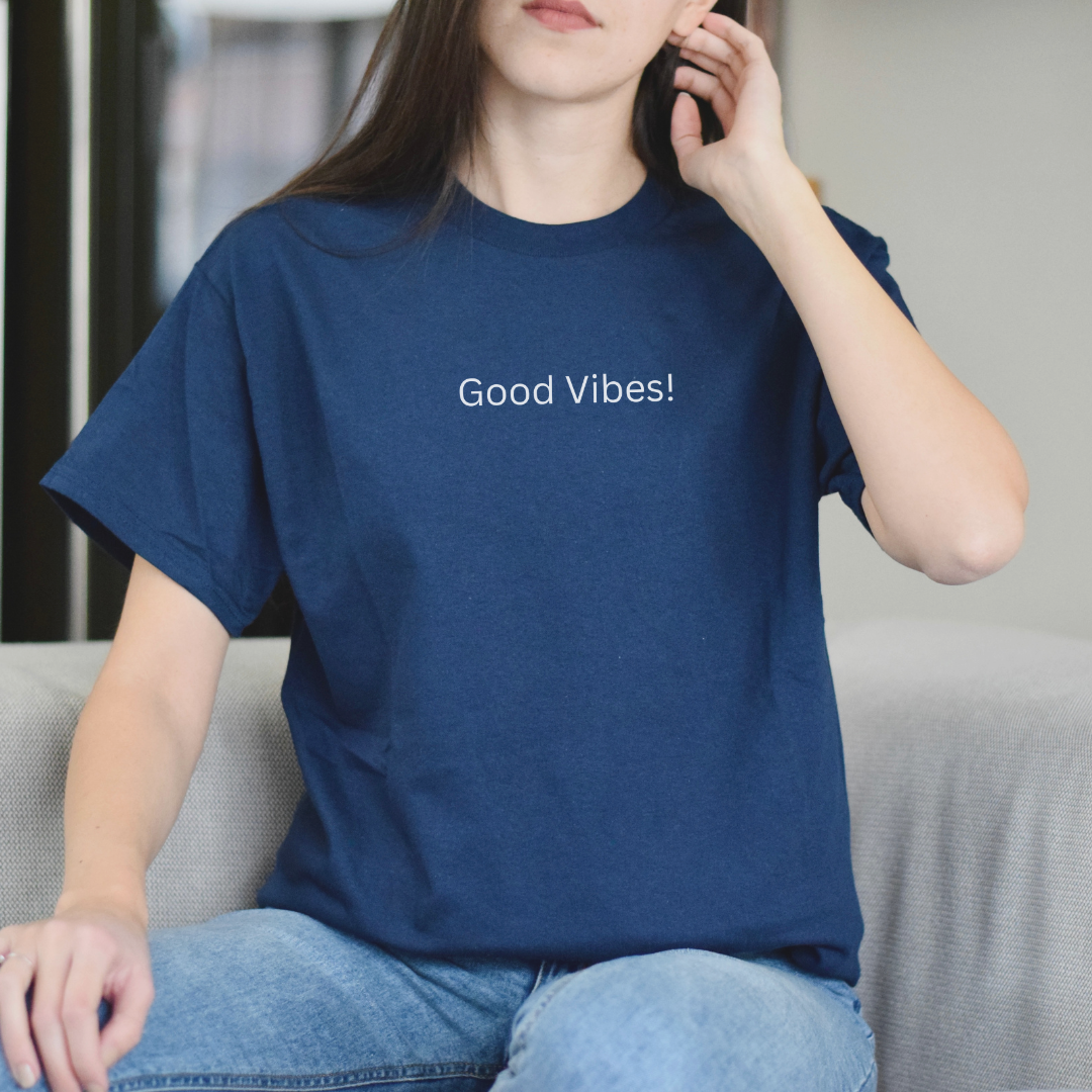 This "Good Vibes" Tee is so comfy. And folks will smile when they see the message. This unisex heavy cotton tee is both comfortable and durable and can be a basic staple of any wardrobe. The specially spun fibers provide a smooth surface for this high quality t-shirt. No side seams mean there are no itchy interruptions under the arms. Can be an excellent gift for a birthday, for Christmas or any other occassion. .: 100% cotton (fiber content may vary for different colors) .: Medium fabric (5.3 oz/yd² (180 g/m²)) .: Classic fit .: Tear-away label .: Runs true to size