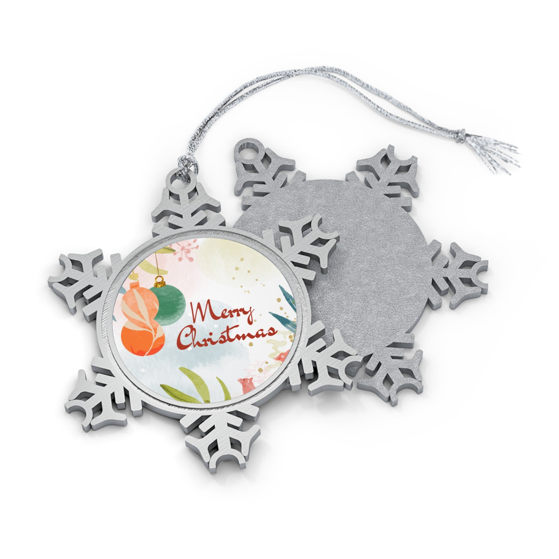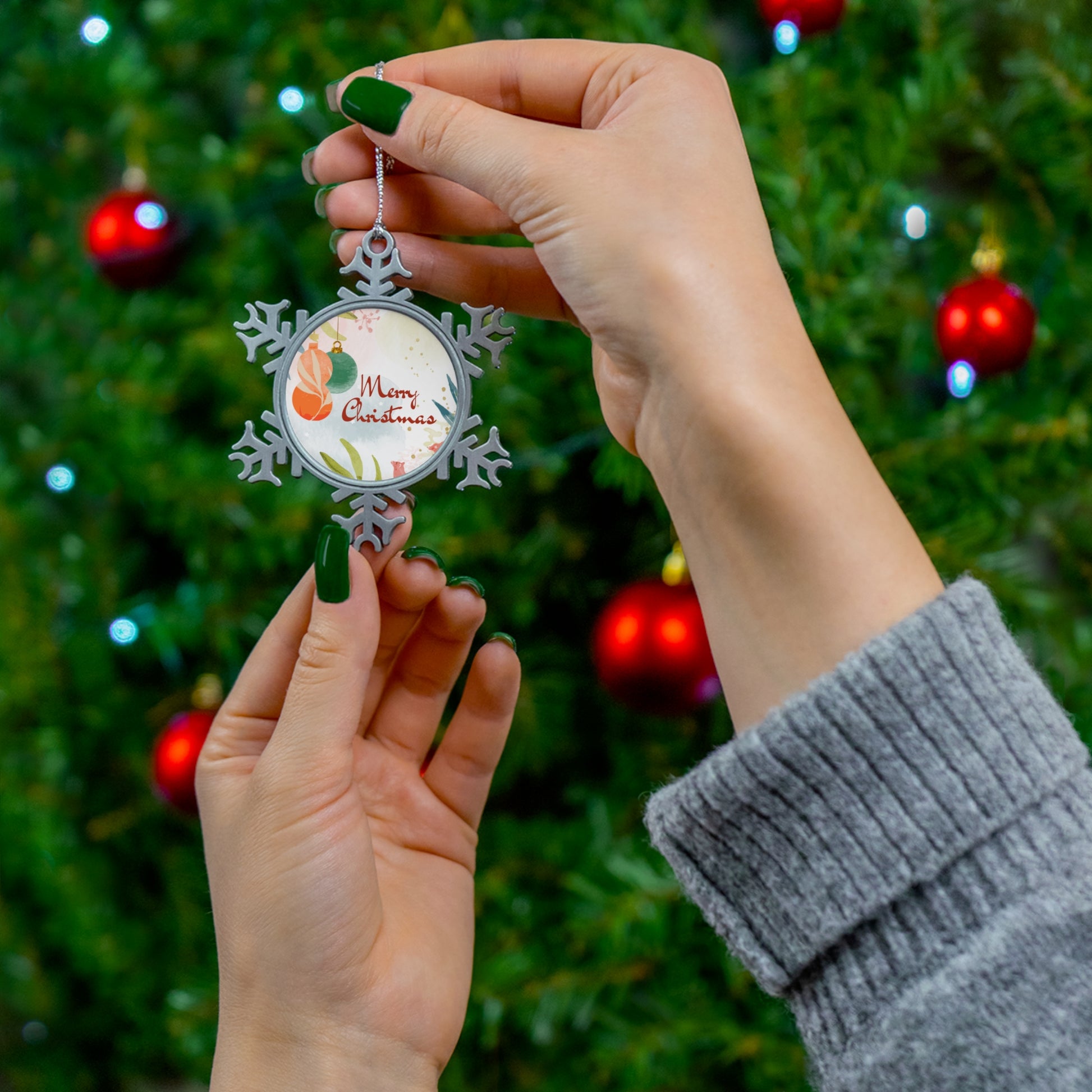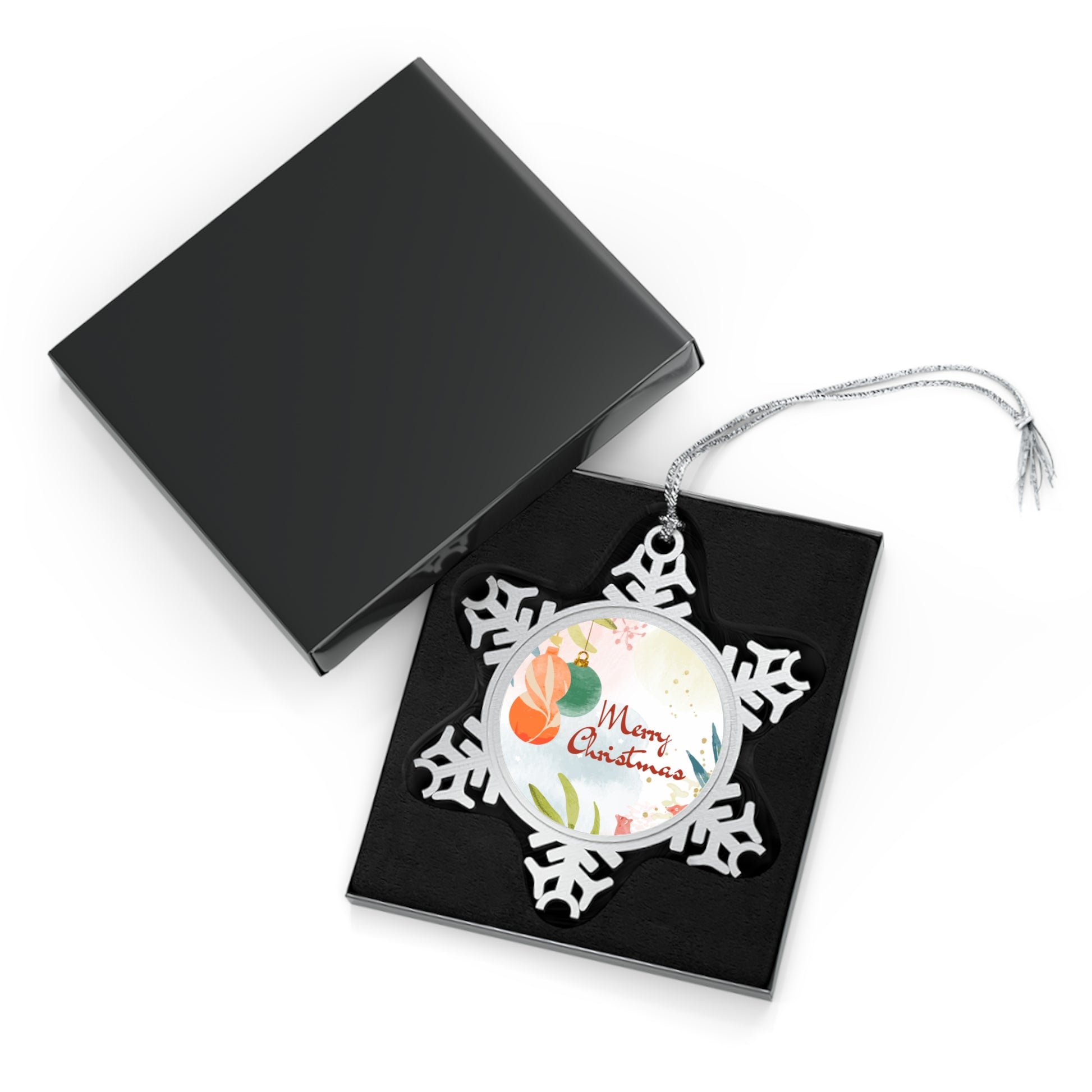 Pewter Snowflake Ornament with Cute Merry Christmas design, great gift for one and all!
