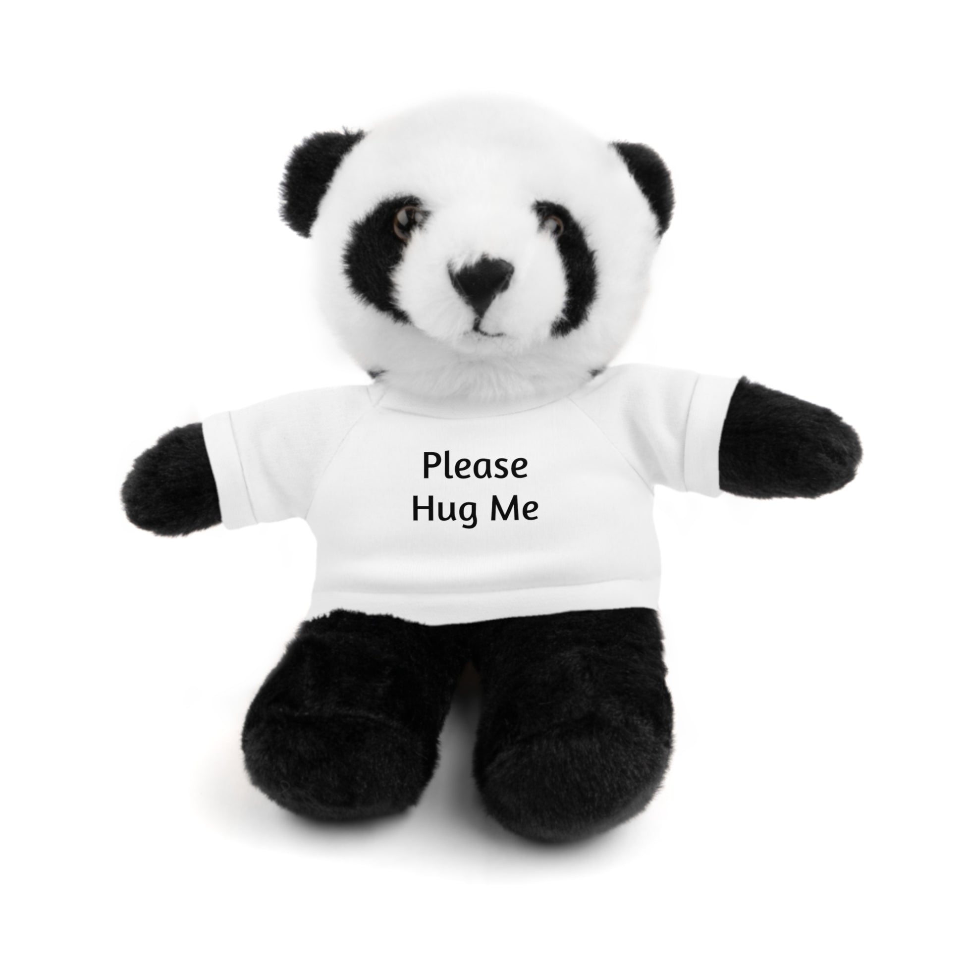 Stuffed Jaguar, Panda, Lion, Bear, Bunny, or a Lamb with the sweet message, “Please Hug Me” on their cotton tees