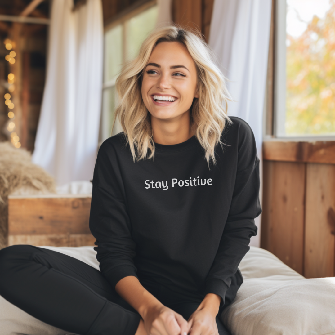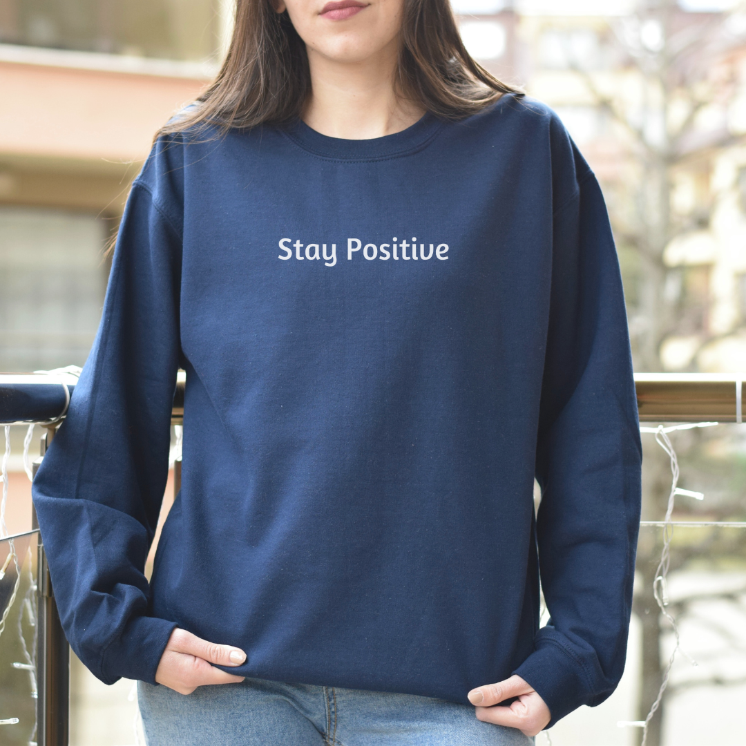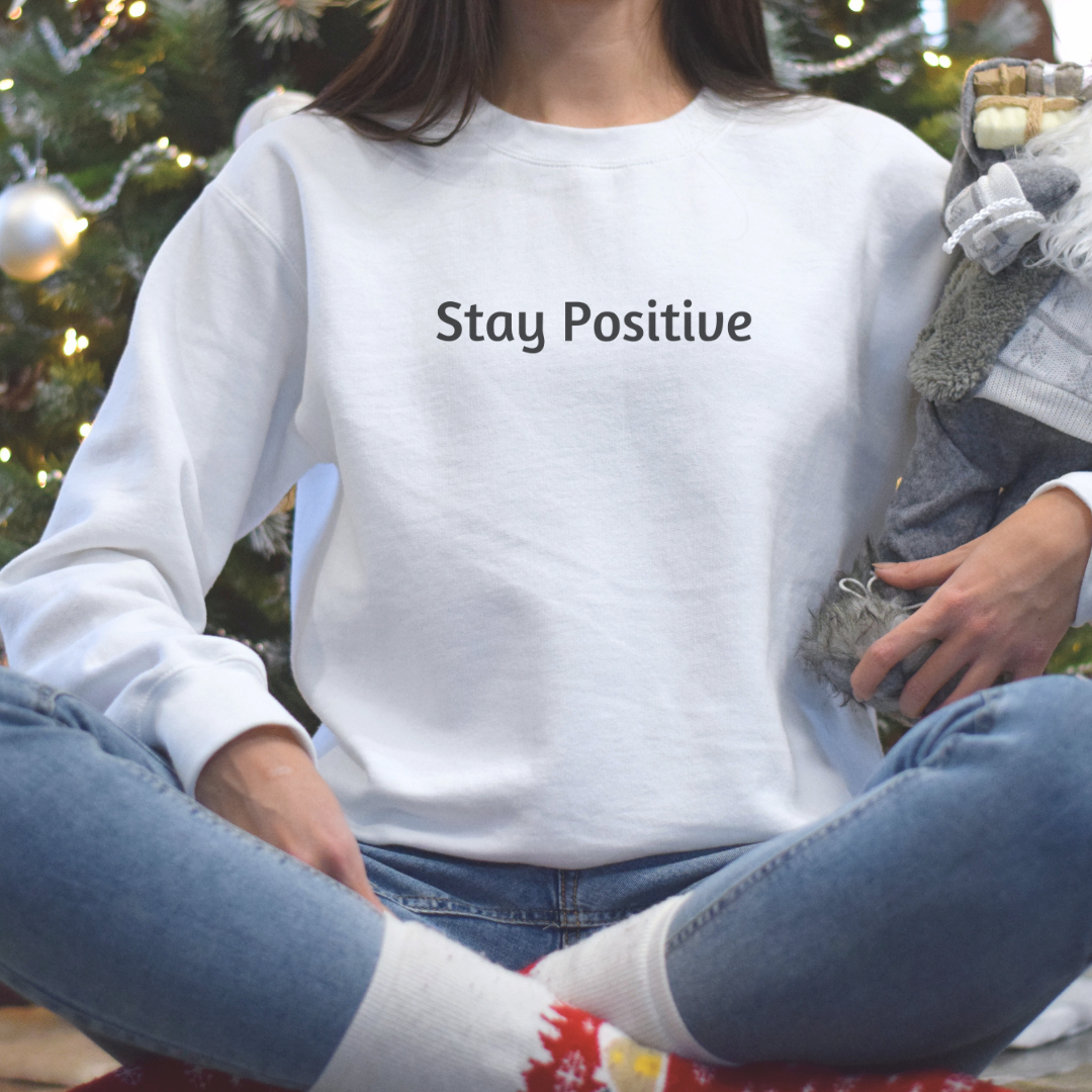 Sweatshirt for Men and Women with “Stay Positive” minimalist design. A great gift for yourself, a spouse, a friend, a parent, a loved one.