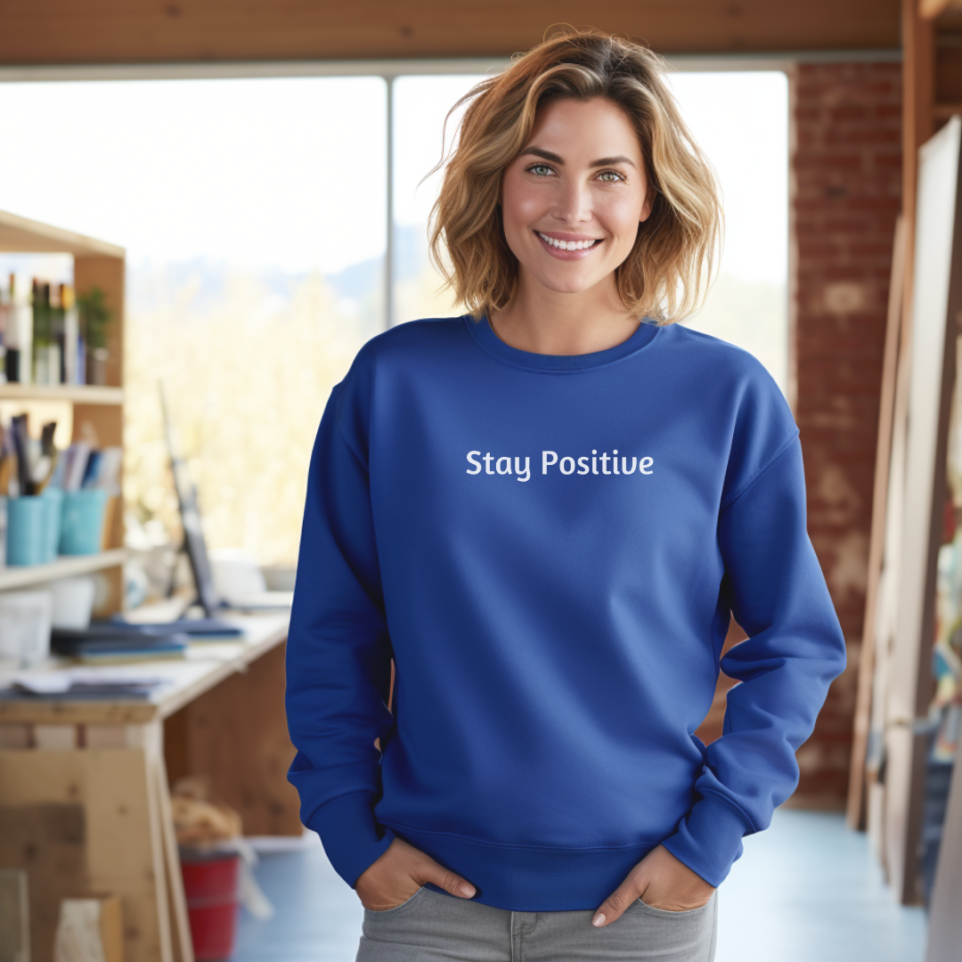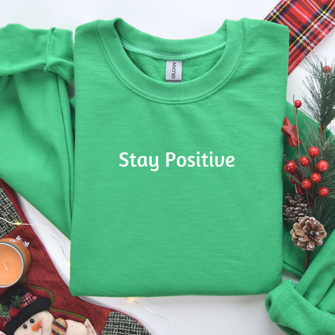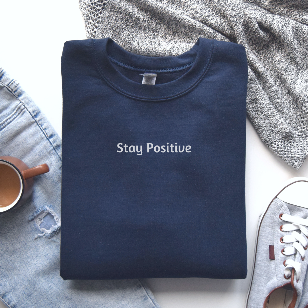 Sweatshirt for Men and Women with “Stay Positive” minimalist design. A great gift for yourself, a spouse, a friend, a parent, a loved one.