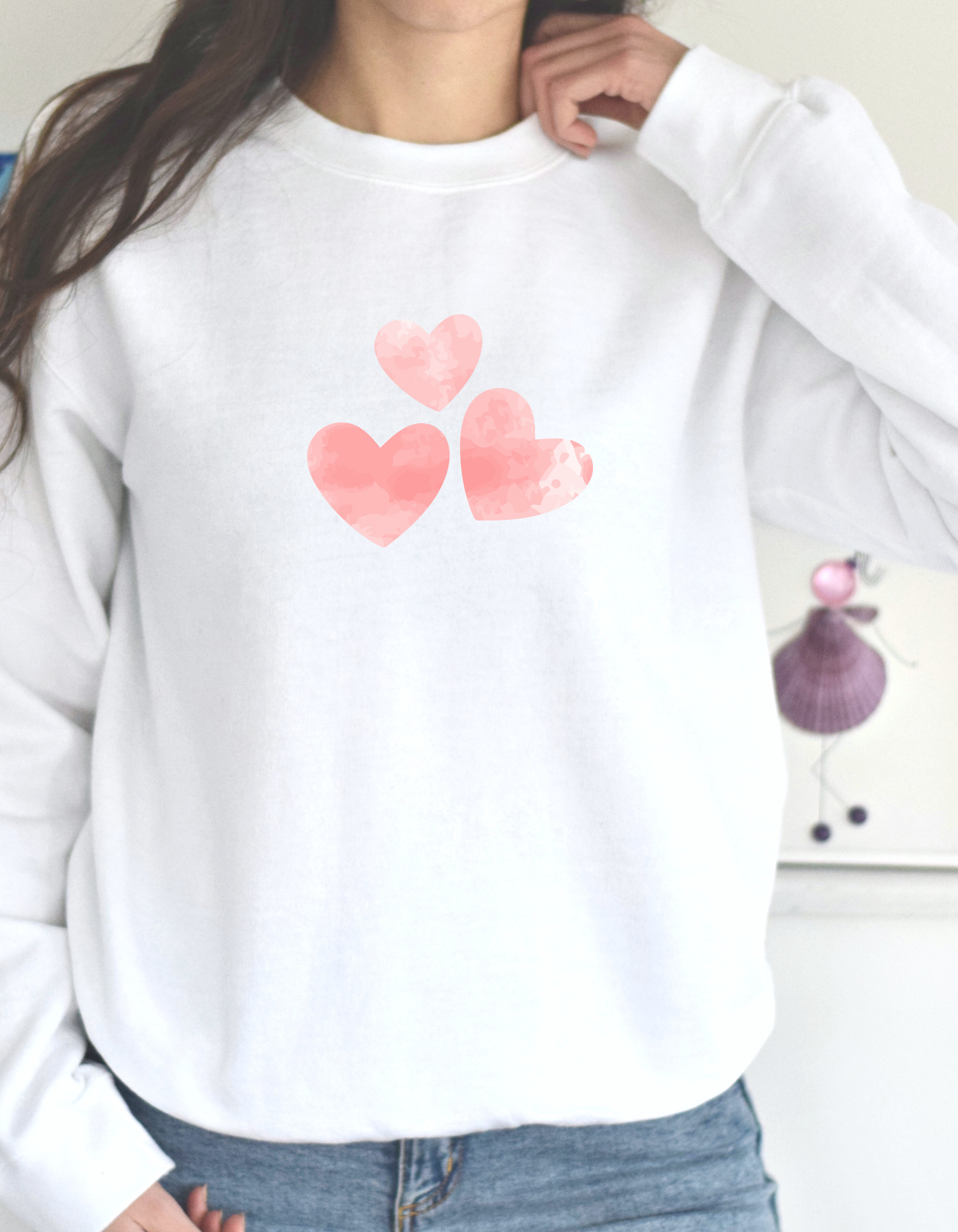 Valentines Day Sweatshirt with Fun Pink Hearts, Great gift for Wife, Mom, Daughter, Auntie, Grandma, Friend, Warm and Cozy